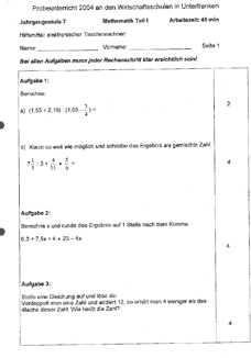 Probeunterricht 2004, Unterfranken natürliche Zahl Probeunterricht Mathematik 7 Bayern