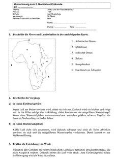 Aufgaben zur Orientierung in Afrika, zu den Vorgängen in Hoch- und Tiefdruckgebieten, zur planetarischen Zirkulation, insbesondere dem Passatkreislauf