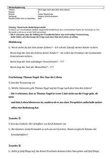 Verlaufsplanung zur Musterstunde: Sinn des Lebens; Geschichte er Frage nach dem Sinn des Lebens, Maslowsche Bedürfnispyramide; Thomas Nagel: Der Sinn des Lebens
