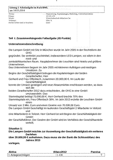 2. Klassenarbeit / Schulaufgabe Betriebswirtschaftslehre, Klasse 10
