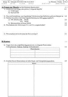 1. Klassenarbeit / Schulaufgabe Rechnungswesen, Klasse 8