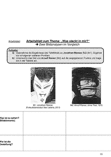 In der Stunde wird eine Arbeit von Jonathan Meese und eine von Arnulf Rainer anhand von einfachen Untersuchungspunkten analysiert und anschließend miteinander verglichen.