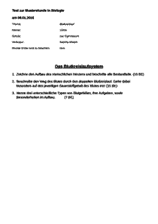 Test zur Musterstunde Blutkreislauf Herz Kreislauf Stegreifaufgabe Biologie 10 Bayern