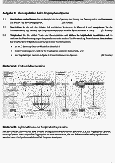 Klausur zum Thema Proteinbiosynthese und Genregulation - trp-Operon / Endproduktrepression und Vergleich mit Substratinduktion