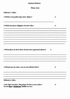 Abschlussarbeit der Unterrichtsreihe zu den fünf Sinnen, in welcher die durchlaufenden Stationen reflektiert werden