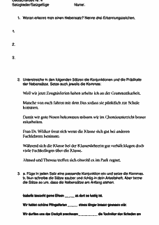 Einfache Klassenarbeit nach Einführung Haupt- und Nebensatz. Nur Konjunktion, keine Relativpronomen