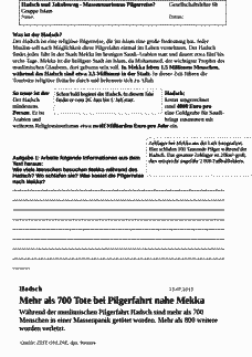 Die SuS erarbeiten arbeitsteilig christliche und islamische Pilgerreisen (Jakobsweg/Hadsch), um diese nach Massentourismus und sanftem Tourismus zu kategorisieren