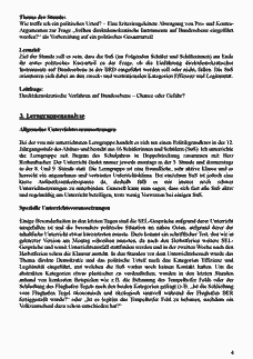 Ziel der Stunde soll es sein, dass die SuS am Ende ihr erstes politisches Kurzurteil zu der Frage, ob die Einführung direktdemokratischer Instrumente auf Bundesebene in der BRD eingeführt werden soll oder nicht, fällen.
