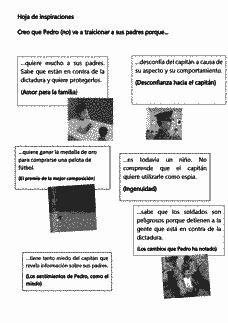 Die SuS versetzen sich in die Lage des Hauptprotatonisten Pedro und schreiben anhand einer kriteriengeleiteten Schreibwerkstatt den Aufsatz aus der Sicht eines Kindes, welches regimekritische Eltern hat.