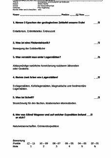 1. Stegreifaufgabe / Kurzarbeit / Extemporalie Wirtschaftsgeographie, Klasse 9