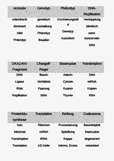 Klassisches Spiel zum Beschreiben/Erklären der Begriffe aus dem Bereich der Genetik als Wiederholung z.B. vor der Klausur. Es sind 4 Seiten mit insgesamt 48 Begriffen und den jeweiligen Begriffen, die nicht genannt werden dürfen.