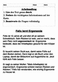 Felix lernt Ergonomie. (Arbeitsbedingungen)
