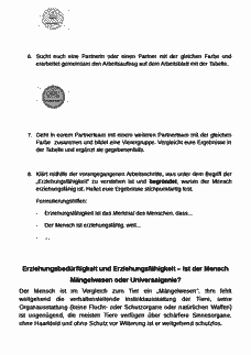 Die Schülerinnen und Schüler arbeiten wesentliche Merkmale der pädagogischen Fachbegriffe Erziehungsbedürftigkeit und Erziehungsfähigkeit heraus (SK1), indem sie relevante Inhalte des Textes „Biologische Aspekte“ herausarbeiten.