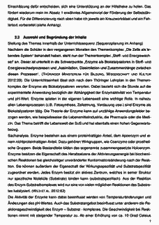 Es handelt sich um eine 90 minutige Lehrprobe im Fach Biologie bei einer Oberstufe zu dem genannten Thema. Lernziele: Hauptlernziel: Die SuS können den Einfluss von Temperatur und pH-Wert auf die Enzymwirkung der Katalase beschreiben. (Sachkompe-ten