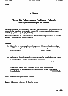Klausur Sozialstaat Vermögenssteuer Reichensteuer