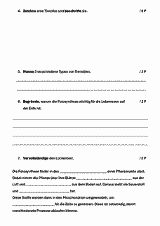 1. Stegreifaufgabe / Kurzarbeit / Extemporalie Biologie, Klasse 7