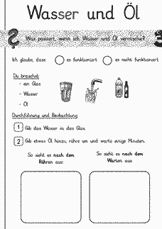 Die Arbeitsblätter umfasssen selbststsändige Experimente zum Thema wasser